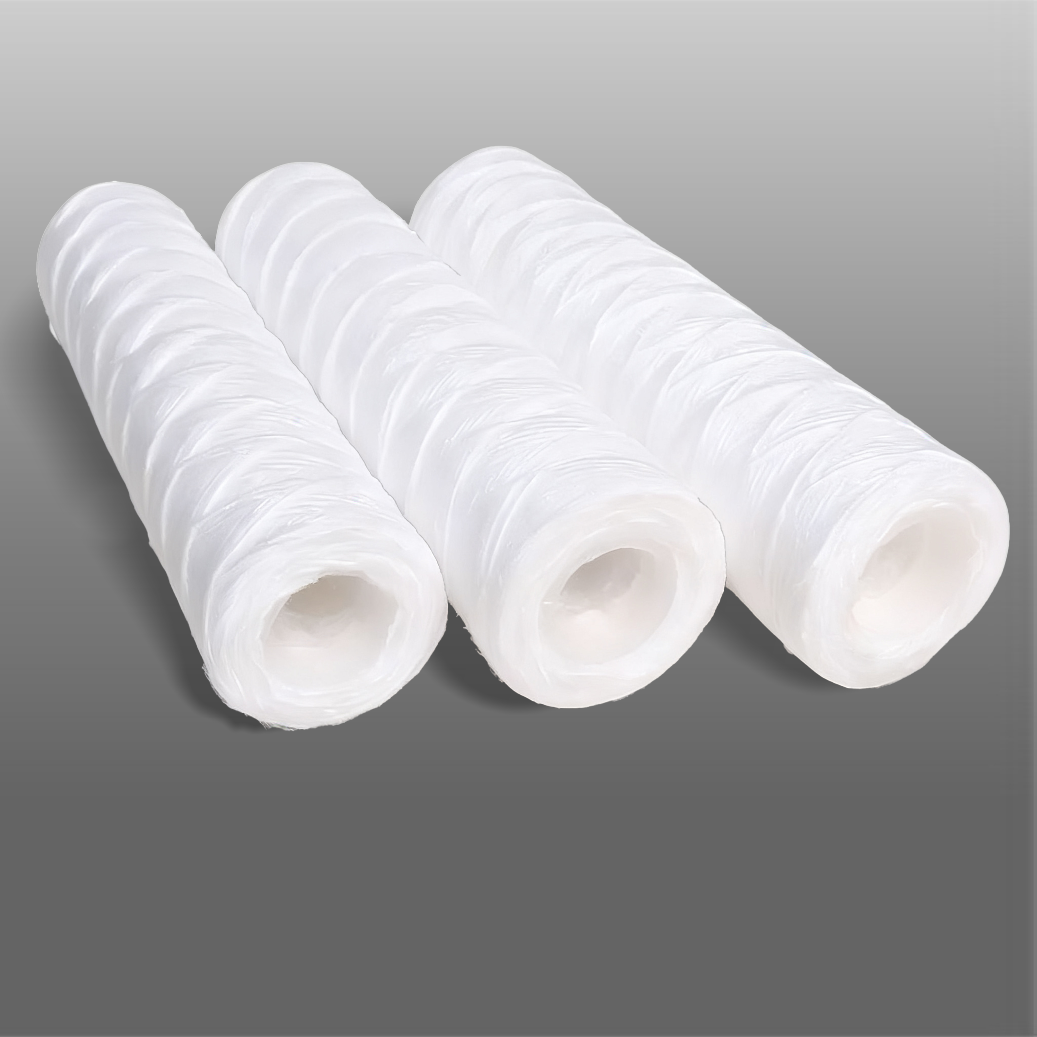 The WPF series String Wound Filter Cartridge utilizes textile fiber roving and special processing technology to tightly wind the porous skeleton into a dense honeycomb structure, effectively removing suspended matter, particles, rust, and other impurities from the fluid.